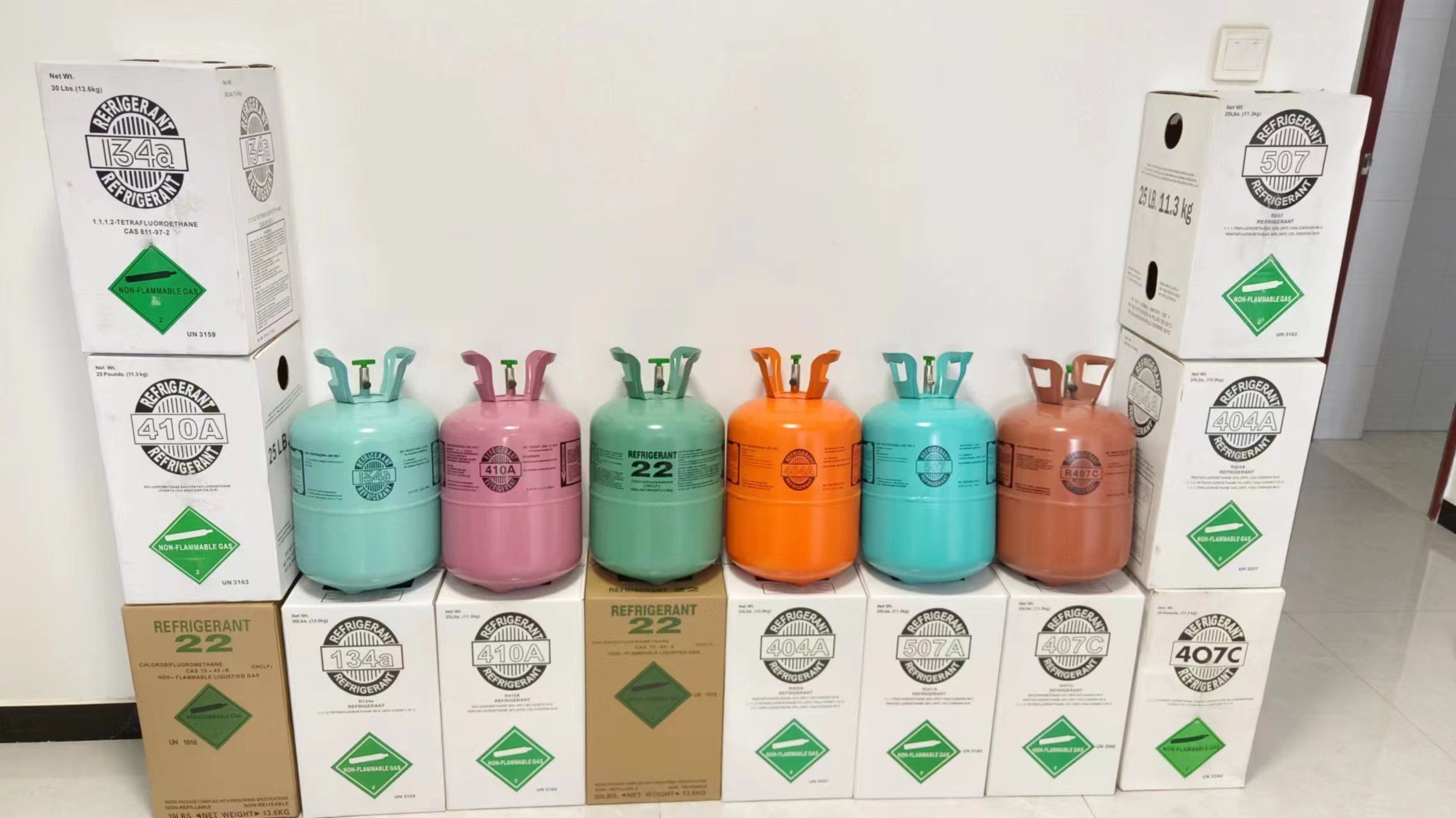 - Группа A1 — негорючие, малотоксичные газы (R134a, R404A).