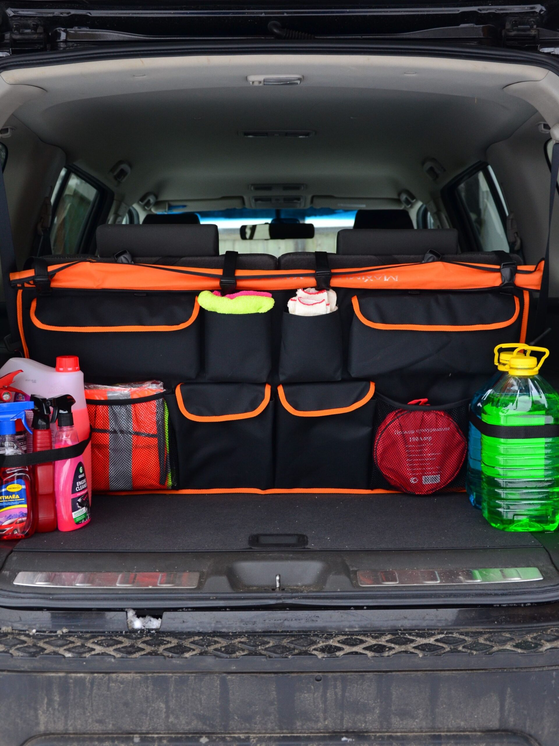 - Органайзеры. Позволяют поддерживать порядок в салоне, хранить все необходимое под рукой и избегать беспорядка. Существуют органайзеры для багажника, спинок сидений, центральной консоли — выбор зависит от ваших потребностей.